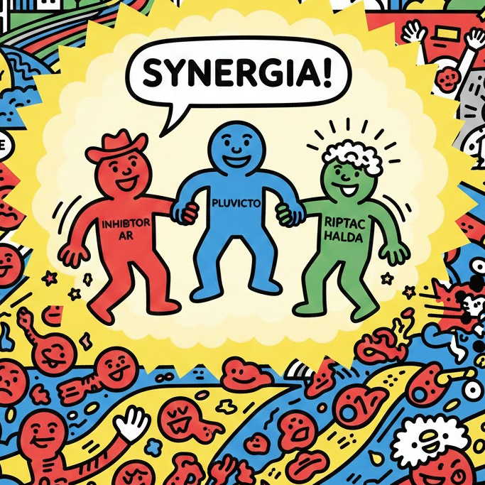 Dlaczego więc Johnson & Johnson płaci 3.05 mld USD (w gotówce i bez żadnych przyszłych kamieni milowych) za cząsteczkę na tak wczesnym etapie rozwoju klinicznego i z wynikami w heterogennej grupie pacjentów? Dlatego, że buduje podejście terapeutyczne w raku prostaty w oparciu o kilka terapii o różnych mechanizmach, które mogą ze sobą działać w synergii. RIPTAC Halda ma uzupełnić: